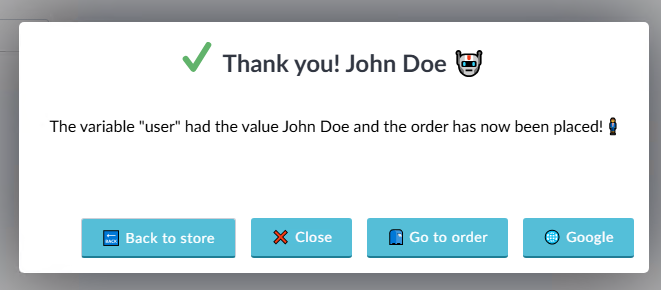 When an order is placed from a service the user is presented with a pop-up. If you want to customize the information presented to the user and/or change what options the user is presented with you can do so by creating your own custom modal.