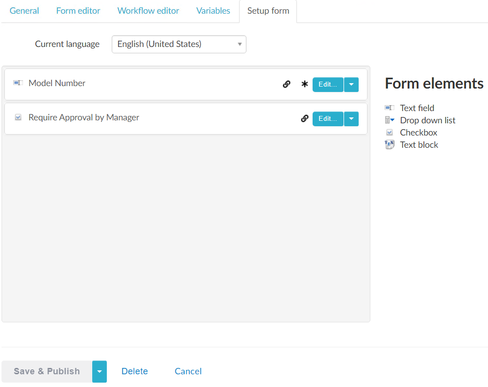 A shared process is a process that can be shared by multiple services. When a shared process is updated, the changes will instantly reflect in all services based on that shared process. It is advisable to use a shared process when there is a set of services that performs the same thing except for smaller deviations in the workflow (and in some cases in the forms). Creating a new shared process involves the same steps as for a new blank process, with the addition that a shared process can also have something called a Setup Form. The setup form is shown in the service creation wizard when creating a new service based on the shared process and is used for collecting data that can be fed into the process.