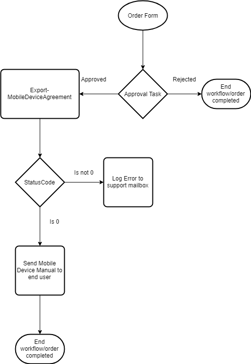 - In Workflow Editor, add the activity Export-MobileDeviceAgreement after the approval activity.