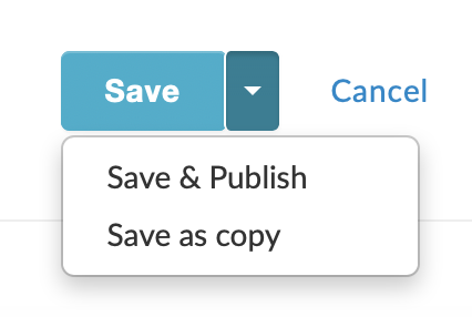 - Save & Publish: Used to publish the version you are working on. For small changes that you are certain will not impact the service e.g. typos etc you can use this option. You will have the ability to revert to older versions if necessary