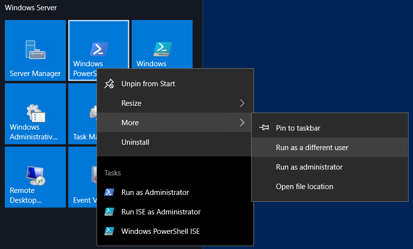 Run powershell as a different user