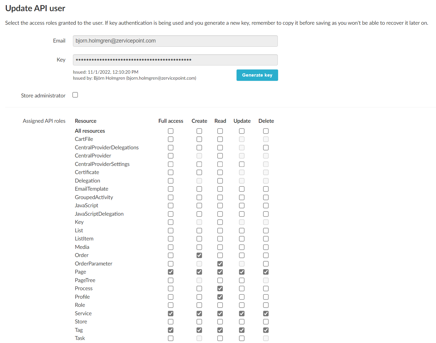 To make it a little bit easier to manage API access we added a completely new view simply called "API users". In this view you can grant and revoke access to the REST API and control what resources and operations are allowed by checking boxes in a grid instead of having to manually add users to the different API roles. We also included API key generation in this view (this was previously a part of the API Authentication tab in the Edit Store view).