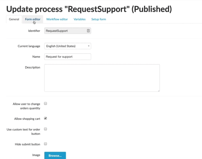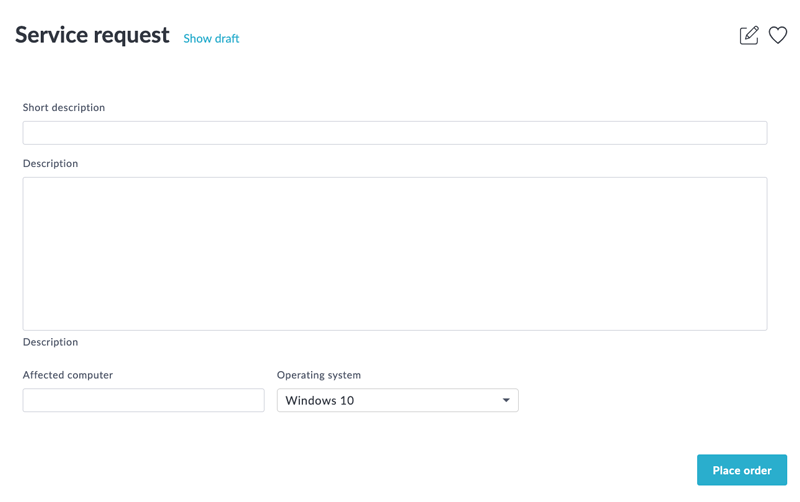 Add the Form section element and form contents – fields to describe the issue, a field for the computer or device and a drop down for the operating system. Bind the field variables.