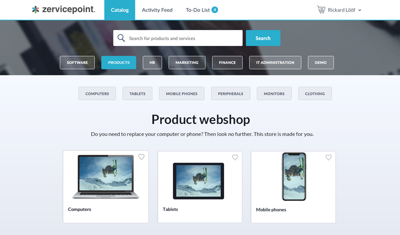 The portal's landing page displays all of your selected and recommended services as well as the user's favorites.