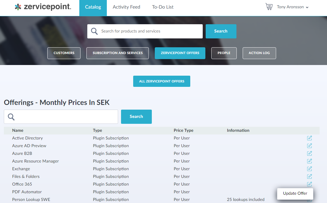 Create dynamic tables by connect actions to it, so that your users can interact with its contents. The actions you assign are connected to existing services in the store.